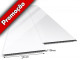 · Após a fixação do acabamento encaixe a lâmina de forro com o lado aparente voltado para baixo e o engate macho virado para o fundo, dentro do vão dos acabamentos na parte lateral empurrando-a até seu encaixe total. Fixe a lâmina nos elementos da armação, através da aba.