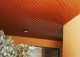 · Após a fixação do acabamento encaixe a lâmina de forro com o lado aparente voltado para baixo e o engate macho virado para o fundo, dentro do vão dos acabamentos na parte lateral empurrando-a até seu encaixe total. Fixe a lâmina nos elementos da armação, através da aba.